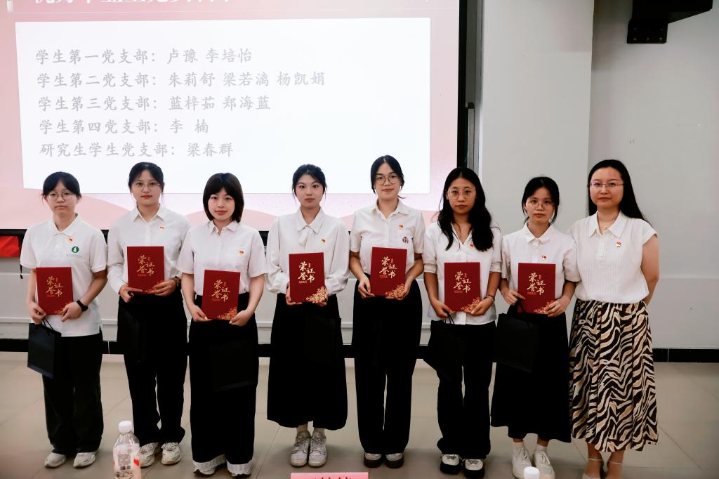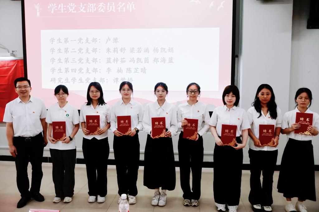 会上,陈军、王婷婷为员工党支部的委员颁发聘书,为荣获“优秀毕业生党员”称号的同学颁发荣誉证书。