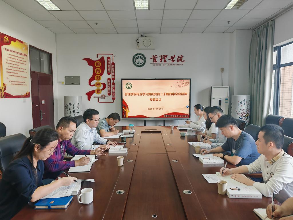 10月31日上午,伟德国际1946亚洲版在白云校区一教502会议室召开传达学习贯彻党的二十届四中全会精神专题会议。会议由公司党委书记陈军主持,公司领导班子成员、党委委员、党支部书记、党政办主任、专职组织员及教师代表等参加会议。