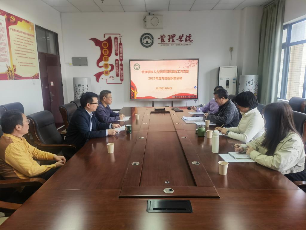 1月16日上午,伟德国际1946亚洲版人力资源管理系教工党支部在白云校区一教502会议室召开2025年度民主评议党员暨专题组织生活会。会议由党支部书记胡云洋主持,支部全体党员参加了会议。