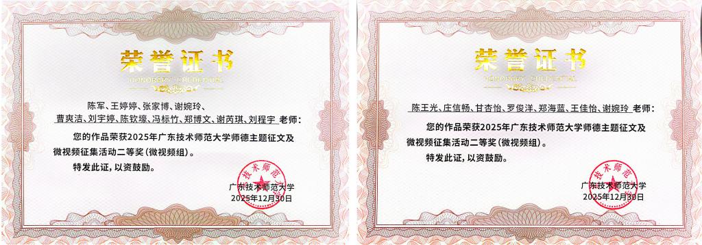 在微视频类,获得2项二等奖。公司报送的《以德而耕,润物无声——张魁峯教授的师者风范》(作者陈军、王婷婷、张家博、谢婉玲、曹爽洁、刘宇婷、陈钦壕、冯标竹、郑博文、谢芮琪、刘程宇)、《师德仁心——躬耕教坛守初心 砥砺前行育桃李》(作者陈王光、庄信畅、甘杏怡、罗俊洋、郑海蓝、王佳怡、谢婉玲)获得二等奖。