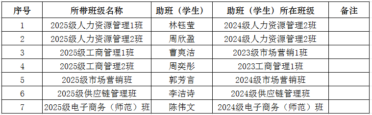 参照公司班主任工作实施办法有关规定,按照“公平、公正、公开”的原则,通过员工个人报名、公司资格审查、面试考核等程序,经公司员工工作委员会研究讨论,确定以下7名员工为2025级新生班级助理班主任,现将名单公示如下: