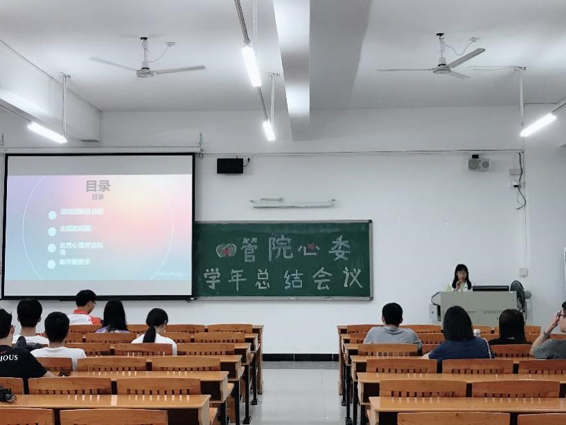 六月,象征着毕业,也是学年的尾声。2019年6月11日21:00,我们邀请了18级心理委员前往三教403参加以“回望,共勉,同进步”为主题的管院心委学年总结会议。本次会议的主持人是心辅站新任组长简思婷,出席会议的有18级全体心理委员以及管院心辅站全体成员。
