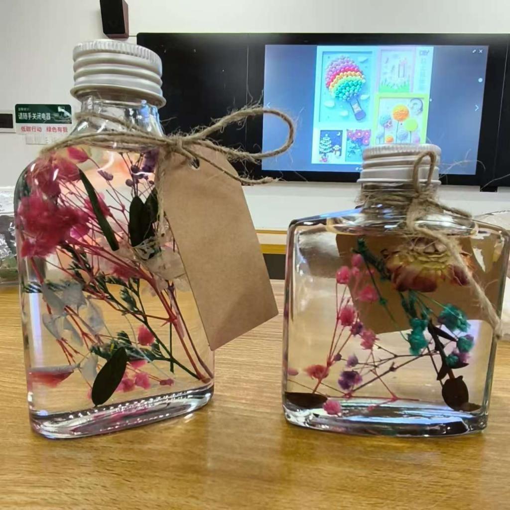 本次活动以培育员工的美学观念、创造力和减轻压力为核心目标,精心设计了DIY干花玻璃瓶和DIY表情粘土相框两大实践环节。同学们在亲手制作的过程中,不仅锻炼了动手实践能力,更在艺术的熏陶下感受到了心灵的宁静、愉悦与释放。每一个细致入微的操作,都是对压力的释放,对美好的追寻。