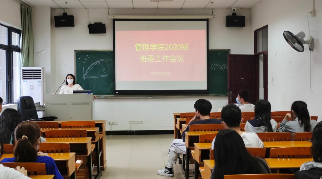 2022年3月22日下午,2020级在一教401课室召开新学期疫情防控工作会议。2020级年级辅导员刘文静、刘玮参加了本次会议。