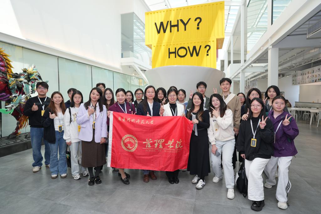 上午10时,师生抵达广东快客电子商务有限公司东莞总部。公司人力资源部校招负责人王朝政、王硕热情接待了管院师生一行,并带领大家先后参观了公司旗下三大核心品牌门店:美妆集合品牌“THE COLORIST调色师”、全球潮玩文化品牌“X11”及生活方式新零售品牌“KKV”。通过观察商品陈列逻辑、数字化运营模式及年轻化场景设计,同学们更为直观地学习了新零售行业“空间+内容+体验”的创新理念,也更好地了解了公司运营和未来工作场景。