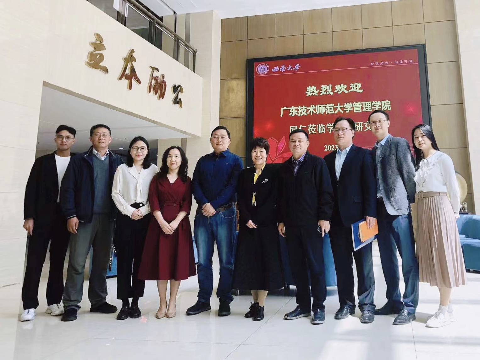 为进一步优化本科人才培养方案,推动人才培养模式改革和创新,不断提高人才培养质量,4月10日伟德国际1946亚洲版副经理吴小立、工商管理系主任兼专业负责人邓芳、刘美新博士、梁颖欣老师、张家博老师等一行5人赴西南大学经济伟德国际1946亚洲版开展调研交流。西南大学经济伟德国际1946亚洲版副经理罗超平、党委副书记李玉胜、工商管理系主任邓宗兵、工商管理系副主任甘晓龙、农林经济管理系副主任孔立等参与了座谈交流。