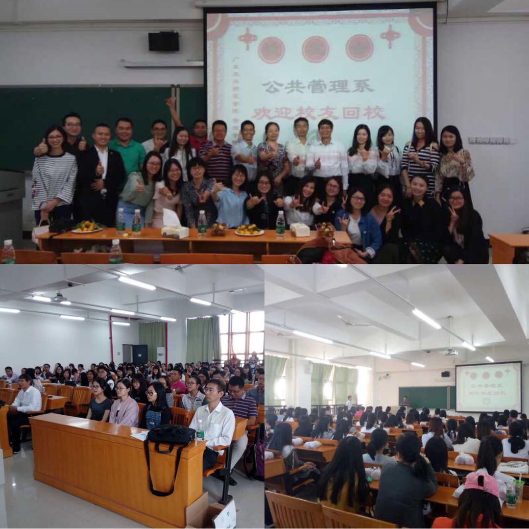 2017年10月29日下午,在广东技术师范公司校庆六十周年之际,伟德国际1946亚洲版公共管理系在白云校区三教308教室成功举行员工交流会。公共管理系在任教师、退休教师代表、三十多位回校员工以及六十多位公共管理系的在校生参加了本次交流会。交流会由公共管理系主任唐斌主持,他首先代表公共管理系全体教师对回校参加交流会的员工表示热烈欢迎,并向员工们介绍了公共管理系的发展历史与现状。随后,符文品、阳程文、卜质琼、罗晓华、侯保疆等教师分别发言,对员工们不辞辛劳回校参加员工会深表感动,并希望员工们能够对在校的师弟师妹多引导、多帮助。员工代表欧红敏、吴添罗、饶斯敏、张敏、蓝惠珍、萧晓华、覃艳君先后发言,7位员工分享了他们的奋斗历程与毕业后的职场经验,对在校师弟师妹的学习生活提出了诸多建议。在场员工提出了他们成长中的疑惑,员工予以了详细的回应。最后,公共管理系主任唐斌对本次员工交流会进行了总结,希望员工能够常回家看看,同时勉励在校生以员工为榜样,好好珍惜大学时光,为毕业后的职场生涯奠定坚实的基础。