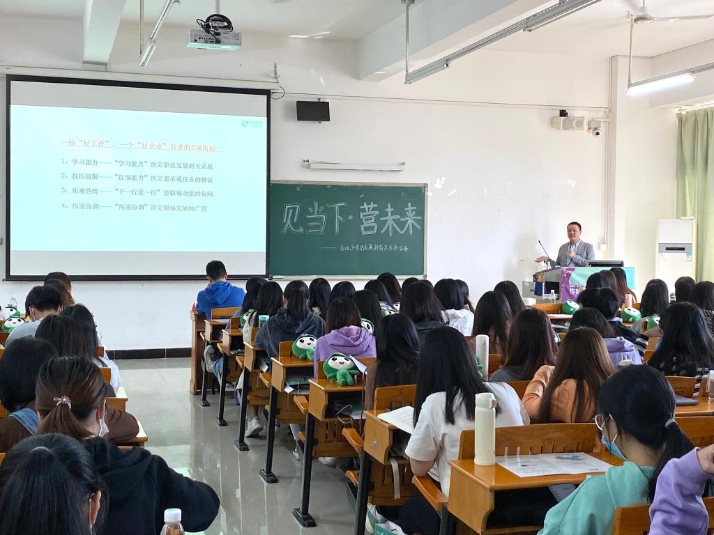 为进一步加强员工与母校的连结,盘活员工资源,同时丰富员工对职场的认识,帮助员工提前做好职业生涯规划,11月11日,伟德国际1946亚洲版邀请2010届市场营销专业员工、绿城中国华南投资发展公司策划副总监戴文杰在白云校区三教203开展职业规划讲座。公司党委陈军书记、辅导员刘玮参加了本次讲座。