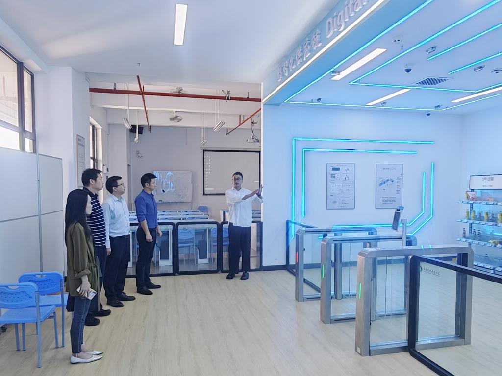 首先,珠海市格努科技有限公司一行参观了白云校区第三实训楼605数智化供应链大工商实验室,在张魁峯、刘楚鸿的介绍讲解下,详细了解智慧无人超市的运营模式与技术亮点。