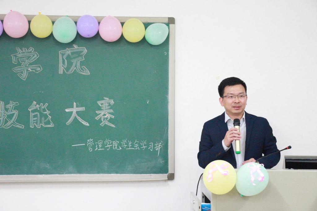 陈军对选手们的用心备课、工作人员的辛勤付出及同学们的积极参与表示感谢,并指出大赛的举办有利于展示师范专业技能、达到以赛促学促改增强综合素质和提高师范专业核心竞争力的目的。最后,他也对同学们提出加强学习和教学技能训练及敢于创新的希冀和鼓励。