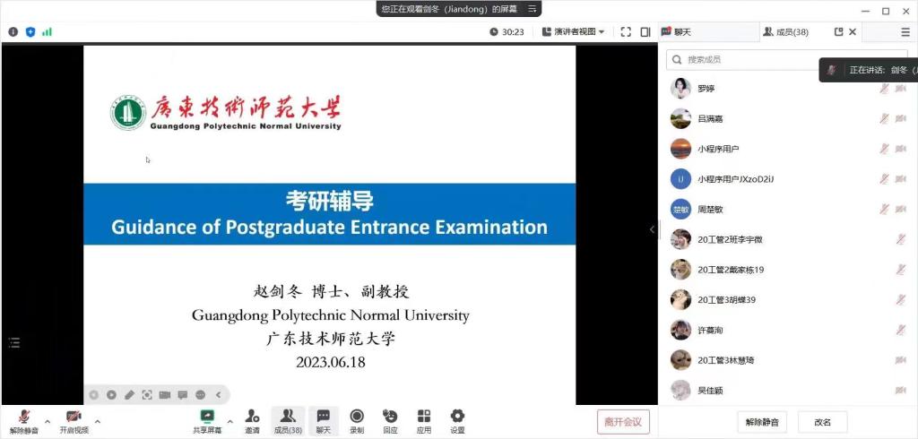 随后,赵剑冬从考研缘由、复习方法、考研建议三个方面进行全面讲解,同时还介绍了工商管理专业考公的相关情况,鼓励我系同学坚定信心,坚持不懈,不忘初心,方得始终。
