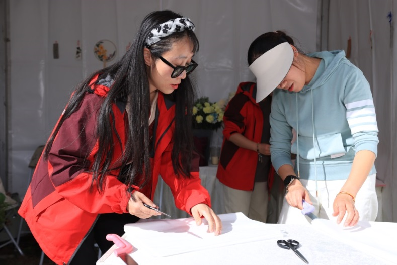 图5:于老师在雅江文化节协助旅游系老师包装花束