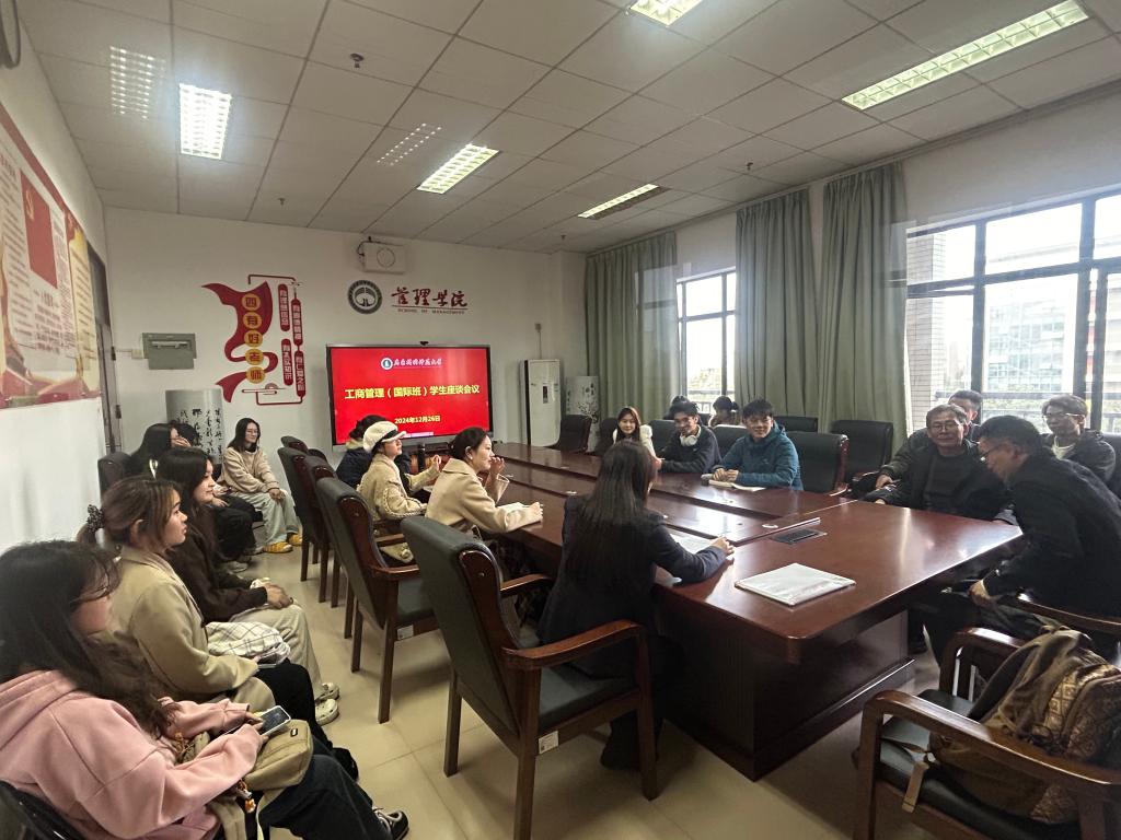 为进一步了解工商管理(国际班)员工的学习情况,倾听员工需求,优化教学资源配置,12月26日,伟德国际1946亚洲版联合国际教育公司召开了以“倾听生音,共促成长”为主题的员工座谈会。座谈会由伟德国际1946亚洲版国际班工作小组组织,副经理姚建华、国际教育公司辅导员金山老师、国际班工作小组组长、专业负责人、专业老师及22级、23级、24级员工代表参加。