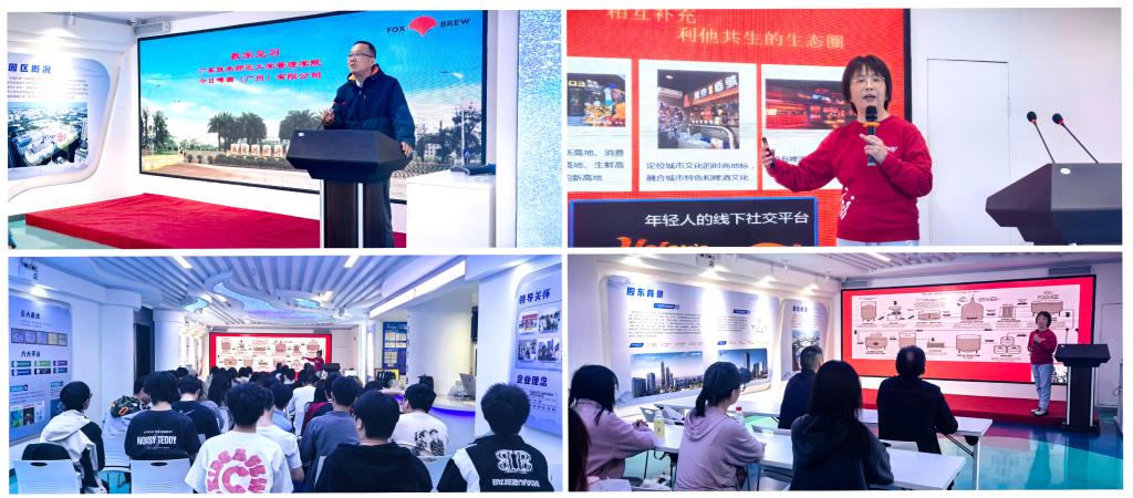 接着,师生团队来到今日啤酒(广州)有限公司,该公司执行董事兼总经理徐佩延热情接待了师生,并详细介绍了公司运营与企业文化。该公司总酿酒师房慧婧分享了精酿啤酒的发展历程、酿造工艺以及产品特点。