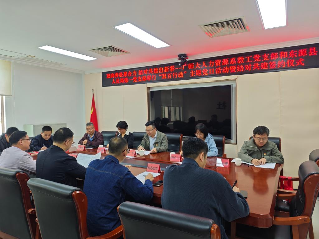 为深入学习贯彻党的二十届三中全会精神,提升党支部的政治功能和组织力,2024年11月22日下午,伟德国际1946亚洲版人力资源管理系教工党支部前往河源,与东源县人社局第一党支部联合举办“双向奔赴聚合力,结对共建出新彩”主题党日活动暨结对共建签约仪式,旨在深化校政合作,发挥党建引领作用,共谋人力资源管理与社会服务发展新策略。公司党委书记陈军、人力资源管理系主任田在兰、专业负责人孙敏、党支部书记胡云洋以及骨干教师刘博逸,东源县人社局局长刘伟青、副局长梁秀权以及相关职能部门负责人等参加了活动。
