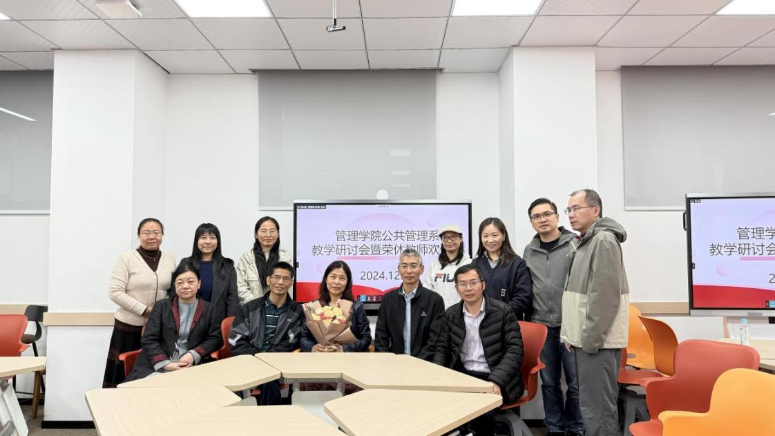 年末岁尾,辞旧迎新。12月31日下午,伟德国际1946亚洲版公共管理系全体教师齐聚一堂,在东校区一教101室召开教学研讨暨荣休教师欢送会。
