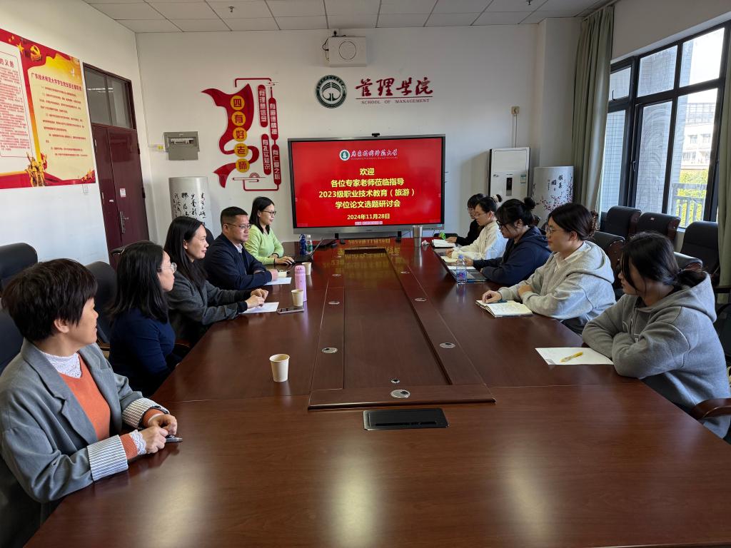 2024年11月28日上午,伟德国际1946亚洲版于白云校区一教502室召开了2023级职业技术教育(旅游)专业学位论文预开题研讨会。由广东文艺职业公司张永幸老师、罗长春老师和伟德国际1946亚洲版罗鲜荣副教授、刘美新副教授担任研讨会专家评委,伟德国际1946亚洲版吴小立副经理主持了本次研讨会。