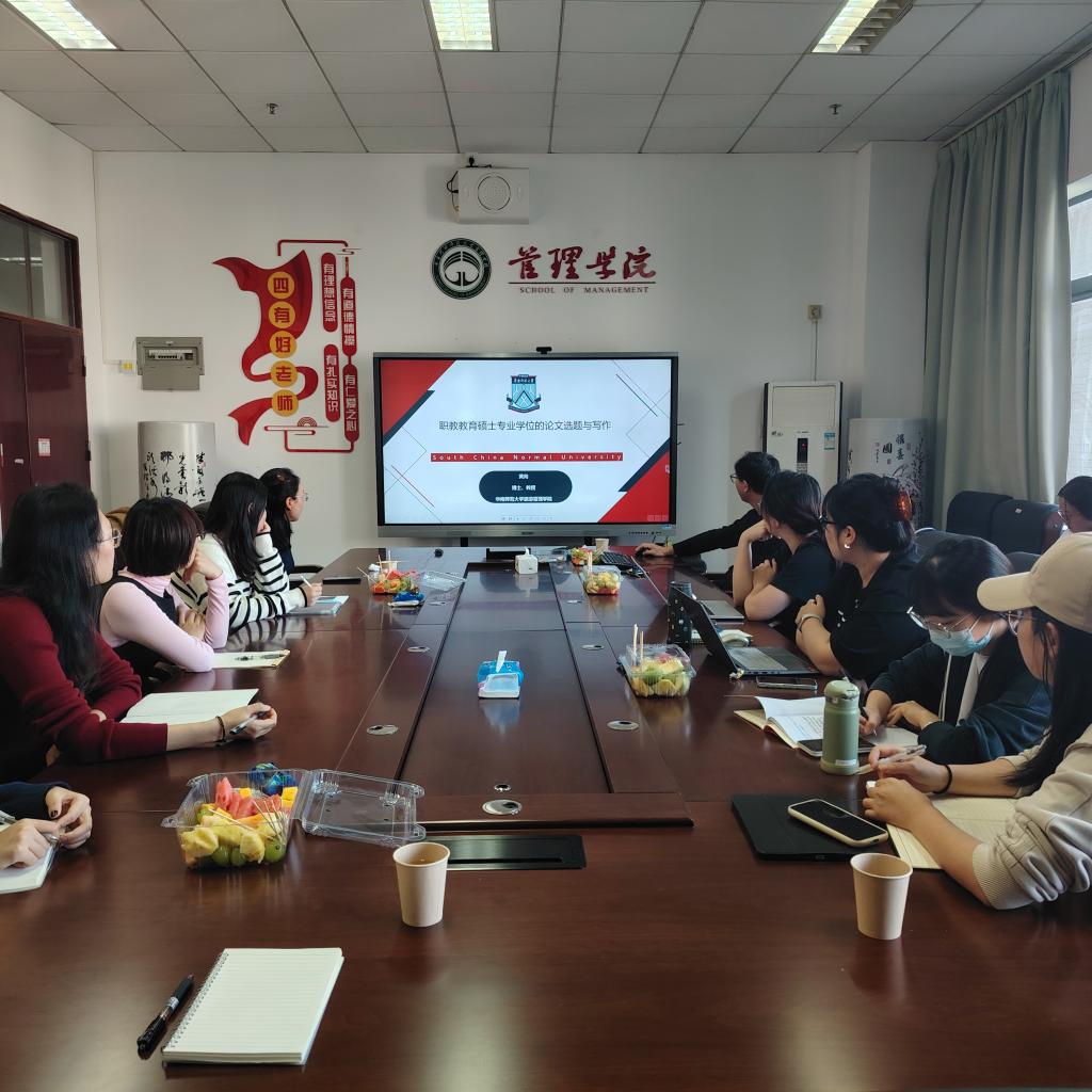 黄向教授详细介绍了职业技术教育(旅游)专业硕士毕业论文选题和写作的诸多事项。依据教指委发布的《关于进一步规范职教教育硕士学位论文选题的通知》,黄向教授向员工着重阐释了职业技术教育硕士学位论文的选题必须聚焦中等职业教育的具体实施,一般应聚焦到中等职业教育相关专业的课程、教学、教材、技能培养等重点领域。同时特别强调,职业技术教育硕士学位论文应着重凸显其实践应用价值,对理论贡献则相对弱化。在学位论文的撰写过程中,黄向教授建议同学们尤其需要注重参考文献的科学性和权威性,研究方法的可靠性、研究过程的规范性等。